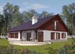 Zuzia. Dom z poddaszem użytkowym i wiatą garażową niepodpiwniczony przeznaczony dla 4-5 osobowej rodziny. Strefę dzienną stanowi parter budynku? z obszernym pokojem kuchnią ze spiżarnią pokojem gościnnym łazienką i dużym pomieszczeniem gospodarczym. Strefa nocna na poddaszu to trzy sypialnie łazienka oraz duży strych. Prezentowany projekt zyskał miano najpopularniejszego w konkursie Dom Marzeń Polaka.