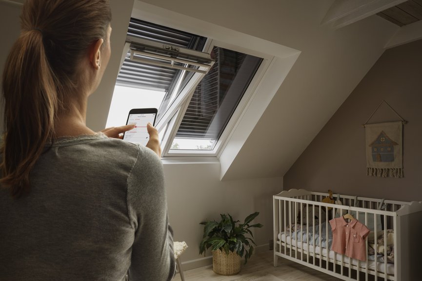 • Po trzecie – wygodnie steruj roletami. Możesz ułatwić sobie wietrzenie domu i zapewnić większy komfort sterowania roletami i oknami elektrycznymi i solarnymi, dzięki aplikacjom na telefon np. VELUX App. Dostępne na rynku rozwiązania pozwalają także na zaprogramowanie otwierania i zamykania okien i rolet o wybranej porze. Dają także możliwość inteligentnego kontrolowania jakości i temperatury powietrza w domu na podstawie wewnętrznych czujników klimatu w domu i aktualnej prognozy pogody. Dzięki temu możesz skupić się na swojej pracy i nie musisz odchodzić od biurka, aby zasłonić rolety lub zamknąć okno, gdy spadną pierwsze krople letniego deszczu.
