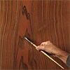 Również rysunek słojów wykonuje się na mokrej warstwie wymalowań. W tym celu trzeba użyć pędzla ze sztywnym włosiem...