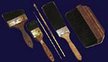 Potrzebne narzędzia to (od lewej): pędzel skórny pędzel do lakieru płaskie pędzelki do malowania linii specjalny pędzel z długim włosem do wymalowań imitacji dewna oraz szczotka malarska.