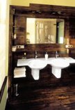 Łazienka choć niezbyt duża dzięki dwóm sporym oknom wydaje się większa i bardziej przestronna niż w rzeczywistości. Ze względu na zastosowane tu szlachetne materiały eleganckie baterie i ceramikę można ją z powodzeniem nazwać pokojem kąpielowym mimo że ma niewielką powierzchnię