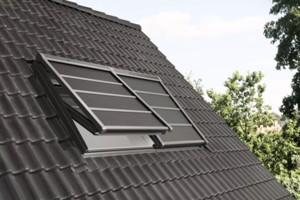 Innym, nowoczesnym rozwiązaniem do okien dachowych jest lekka roleta zewnętrzna. Można ją wygodnie podnosić i opuszczać za pomocą przycisku dołączonego do produktu. Nie tylko chroni przed nagrzewaniem wnętrz, ale także zapewnia efekt zaciemnienia – sprawdzi się więc w sypialni i pokoju dziecka, które potrzebuje drzemki w ciągu dnia.