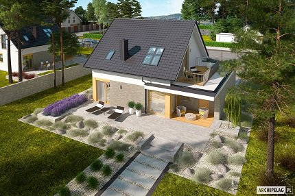 Największą zaletą małego domu z poddaszem użytkowym jest możliwość zbudowania go nawet na niewielkiej, często wąskiej działce. Nieduża powierzchnia zabudowy w stosunku do powierzchni użytkowej pozwala na funkcjonalne zaplanowanie przestrzeni, przy jednoczesnym pozostawieniu miejsca na ogród. Dom z poddaszem użytkowym umożliwia również czytelny podział stref – parter to rodzinna część dzienna, poddasze – zaciszna strefa nocna, zapewniająca maksimum prywatności mieszkańcom. Dużym plusem domów z poddaszem użytkowym jest także niski koszt utrzymania i ogrzewania. W naszej kolekcji projekty domów z poddaszem użytkowym są wspaniale doświetlone przez duże przeszklenia i okna połaciowe.