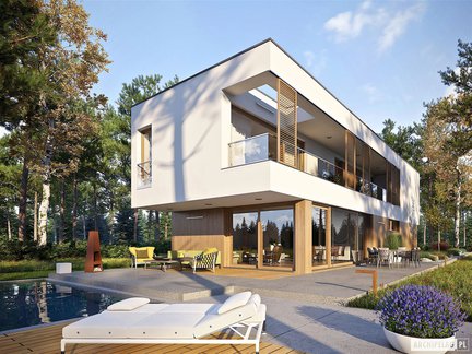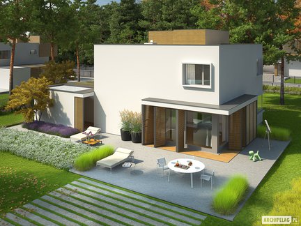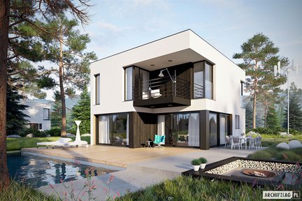 Projekt domu, który zachwyca swoim nowoczesnym wyglądem zewnętrznym i funkcjonalnym rozplanowaniem pomieszczeń. Z uwagi na kompaktową bryłę i małą powierzchnię zabudowy idealnie nadaje się na małą działkę. Dom komfortowy, przestronny, jasny i przytulny, z atrakcyjnym balkonem i tarasem, na którym można przyjemnie wypocząć po pracy. Projekt wyróżniony m.in. przez Onet i Archimanię.