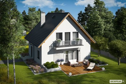 Projekt domu o zwartej formie, elegancki i przytulny – świetny na małą działkę. Tani w budowie i użytkowaniu. Funkcjonalny układ pomieszczeń i maksymalne wykorzystanie powierzchni zapewnia mieszkańcom codzienny komfort użytkowania. Atrakcyjny taras oraz dwa klimatyczne balkony stanowią dodatkową strefę wypoczynkową.