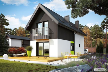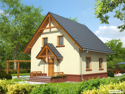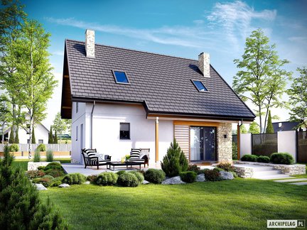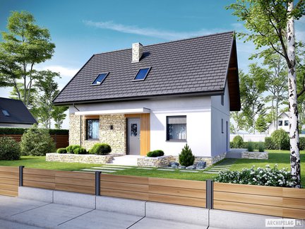 Projekty domów z poddaszem, które mają relatywnie małą powierzchnię oraz nie posiadają garażu charakteryzują się zwartą, prostą bryłą i najczęściej dachem dwuspadowym. Taka kompaktowa forma budynku pozwala na posadowienie go na małej, a także wąskiej działce. Łatwiej jest również wkomponować taki dom w otoczenie. Projekt domu bez garażu to także dobre rozwiązanie, jeśli mamy ograniczony budżet. W przyszłości możemy wybudować atrakcyjną wiatę, która z powodzeniem zastąpi garaż. Niewielka powierzchnia domu wcale nie oznacza mniejszego komfortu użytkowania. Wnętrza są bardzo funkcjonalnie rozplanowane, z maksymalnym wykorzystaniem powierzchni, tak aby domownicy mieli wygodne miejsce do odpoczynku i wspólnego spędzania czasu. Zobaczcie nasze propozycje małych domów z poddaszem i bez garażu! Znajdziecie wśród nich także projekty domów dla tych, którzy potrzebuję więcej pomieszczeń. Sprawdźcie!
