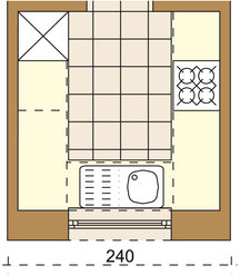 lodówka), strefa morka (zlewozmywak, zmywarka), strefa gotowania,
