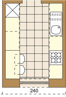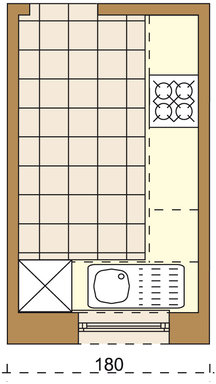 Kuchnia laboratorium - mała kuchnia zaplanowana jako miejsce przygotowywania posiłków; ergonomiczna; rzadko stosowana w domach jednorodzinnych.